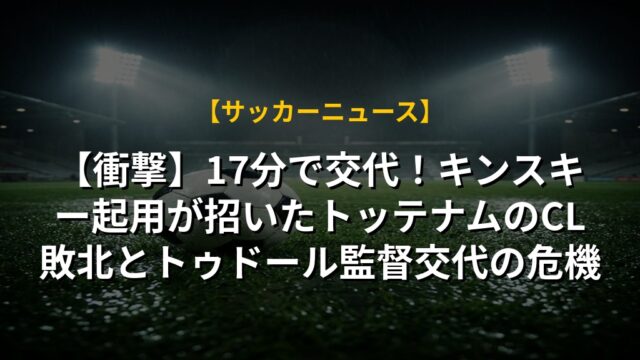 【衝撃】17分で交代!キンスキー起用が招いたトッテナムのCL敗北とトゥドール監督交代の危機