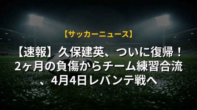 【速報】久保建英、ついに復帰!2ヶ月の負傷からチーム練習合流、4月4日レバンテ戦へ