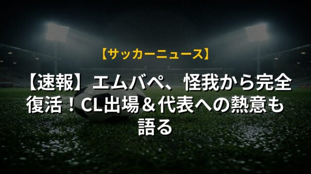 【速報】エムバペ、怪我から完全復活!CL出場&代表への熱意も語る