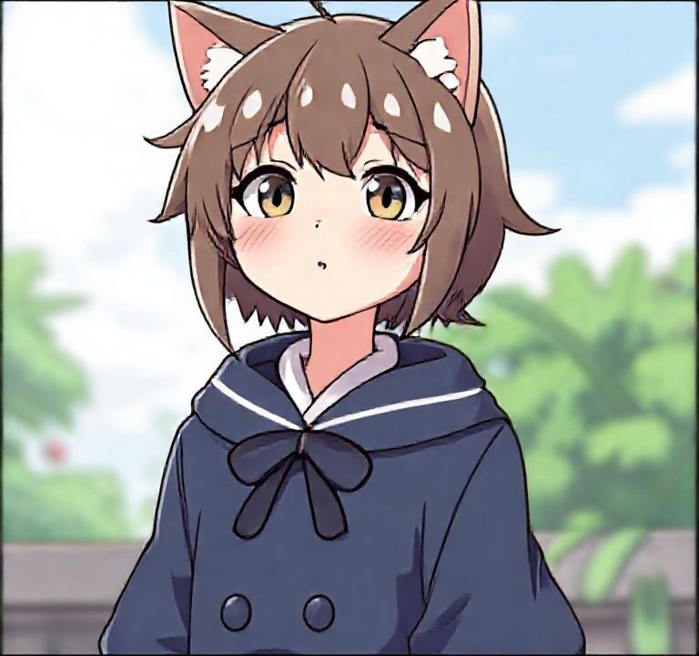 正解:猫のシルエットの形をした、笑顔のキュートなキャラクター