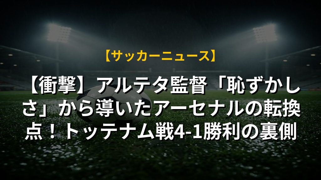 【衝撃】アルテタ監督「恥ずかしさ」から導いたアーセナルの転換点!トッテナム戦4-1勝利の裏側