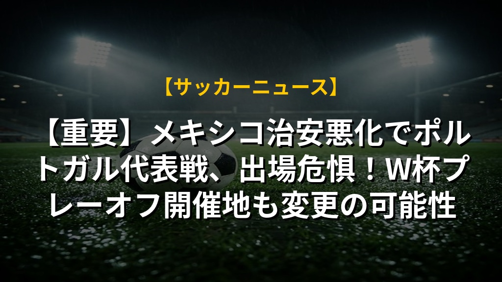 - ポルトガルサッカー連盟は、メキシコの治安情勢を注視し、3月28日の親善試合出場を不確実としている。