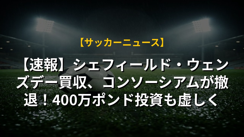 シェフィールド・ウェンズデーの買収を検討していたコンソーシアムが撤退したことは、クラブの再建に大きな影響を与える。