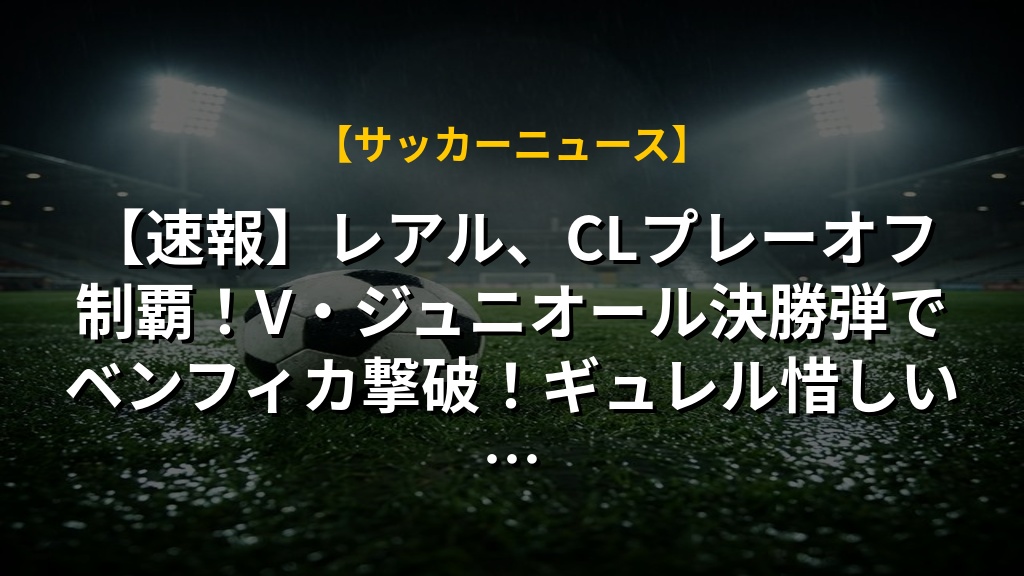 【速報】レアル、CLプレーオフ制覇!V・ジュニオール決勝弾でベンフィカ撃破!ギュレル惜しい…