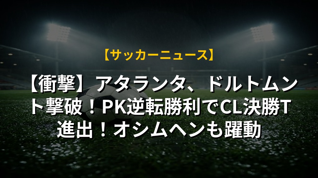 アタランタは、ボルシア・ドルトムントとのチャンピオンズリーグの試合で劇的な勝利を収め、2試合合計4-3で16強に進出した。試合はアタランタが先制し、前半に2点をリード。後半にはドルトムントが反撃し、カリム・アデェミがゴールを挙げたものの、アタランタは試合終了間際に獲得したPKをラザル・サマルジッチが成功させ、勝利を決定づけた。