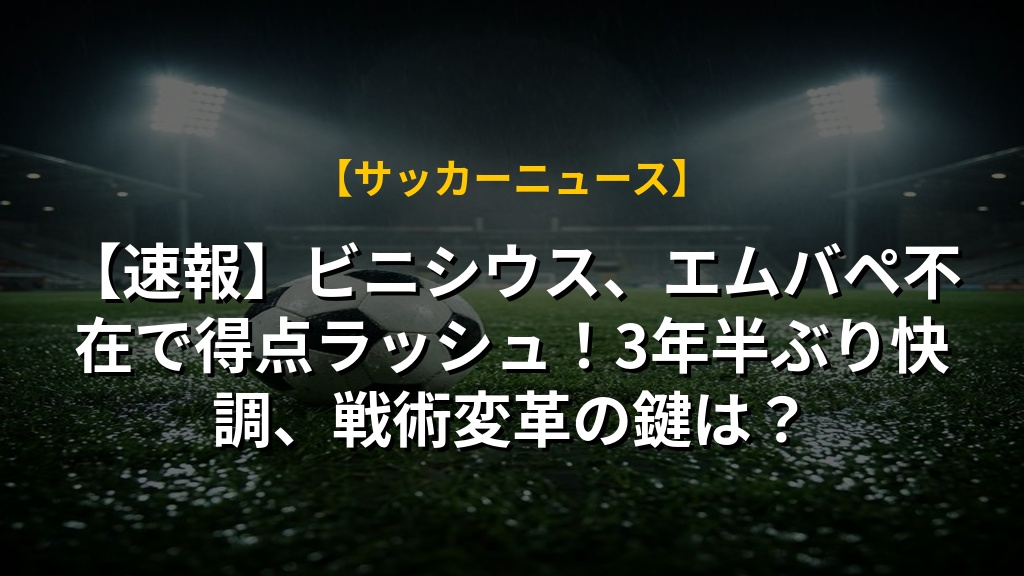 【速報】ビニシウス、エムバペ不在で得点ラッシュ!3年半ぶり快調、戦術変革の鍵は?