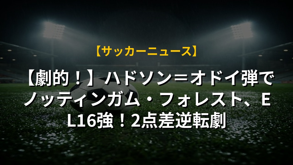 【劇的!】ハドソン=オドイ弾でノッティンガム・フォレスト、EL16強!2点差逆転劇
