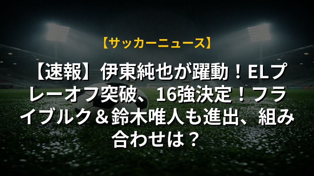【速報】伊東純也が躍動!ELプレーオフ突破、16強決定!フライブルク&鈴木唯人も進出、組み合わせは?