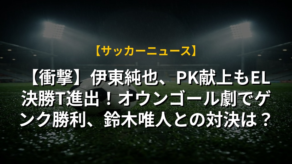 【衝撃】伊東純也、PK献上もEL決勝T進出!オウンゴール劇でゲンク勝利、鈴木唯人との対決は?