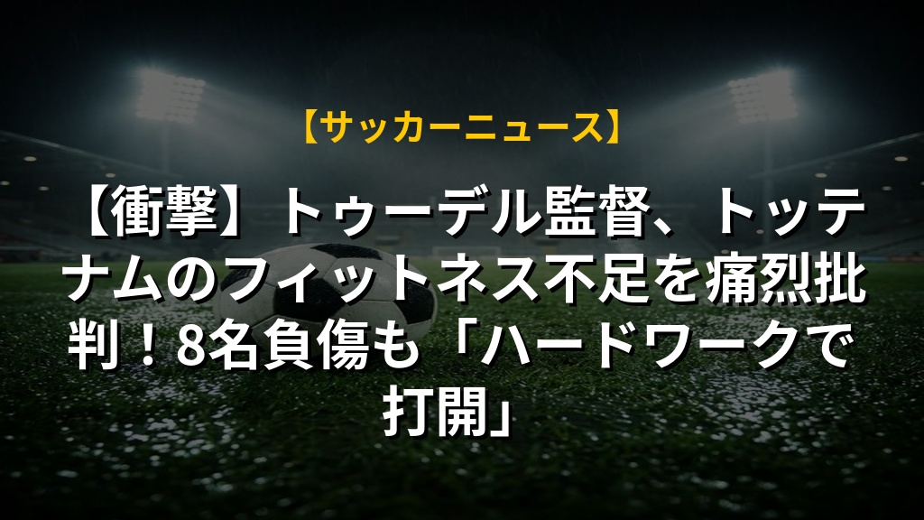 【衝撃】トゥーデル監督、トッテナムのフィットネス不足を痛烈批判!8名負傷も「ハードワークで打開」