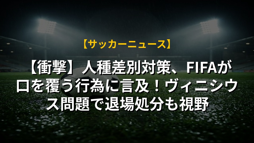 【衝撃】人種差別対策、FIFAが口を覆う行為に言及!ヴィニシウス問題で退場処分も視野