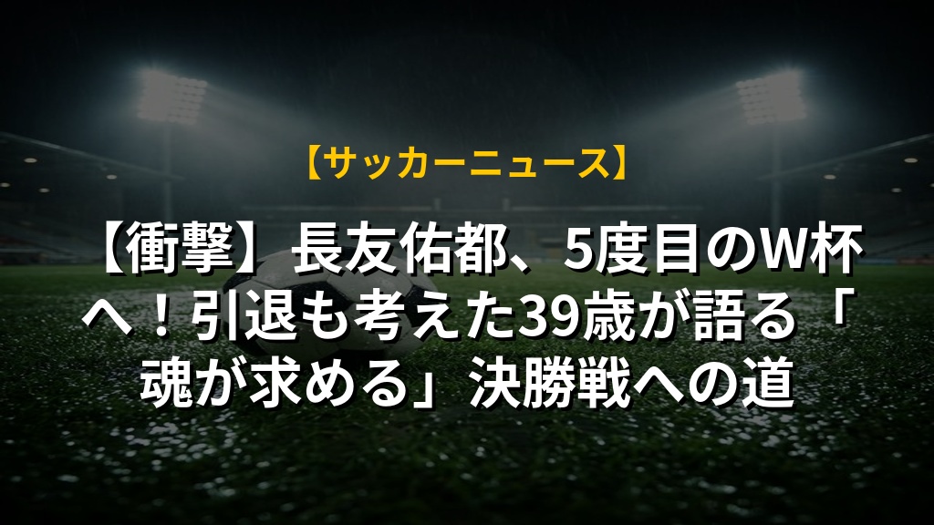 10年間のインターバルを経て5度目のW杯出場を目指すという事実は、単なる記録達成を超え、日本サッカー界における彼の存在意義を改めて浮き彫りにする。