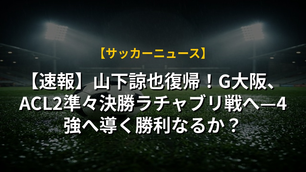【速報】山下諒也復帰!G大阪、ACL2準々決勝ラチャブリ戦へ—4強へ導く勝利なるか?