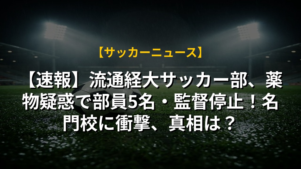 【速報】流通経大サッカー部、薬物疑惑で部員5名・監督停止!名門校に衝撃、真相は?