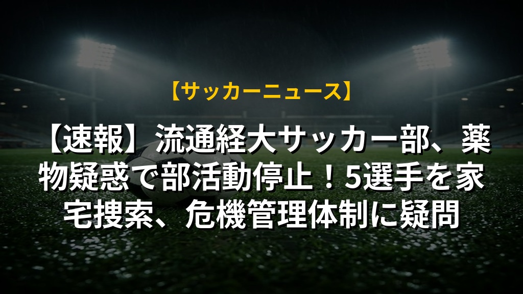 【速報】流通経大サッカー部、薬物疑惑で部活動停止!5選手を家宅捜索、危機管理体制に疑問