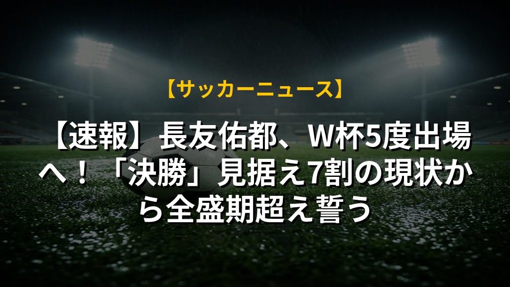 - 長友佑都選手は、W杯5度出場へ向け「決勝の舞台に行きたい」と意欲。自身の伸び代に期待し、全盛期超えを目指す。
