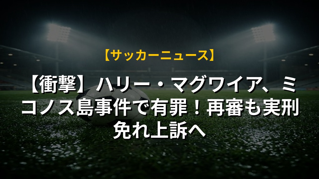 - ハリー・マグワイア選手は、ミコノス島での事件で、ギリシャの裁判所から執行猶予付きの懲役15ヶ月の判決を受けました。