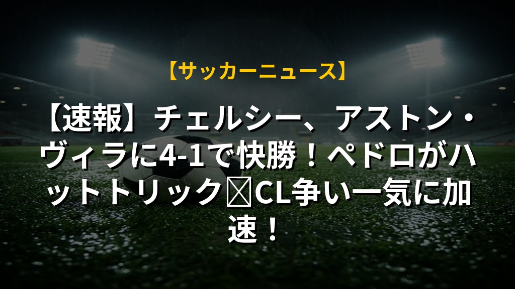 【速報】チェルシー、アストン・ヴィラに4-1で快勝!ペドロがハットトリック🔥CL争い一気に加速!