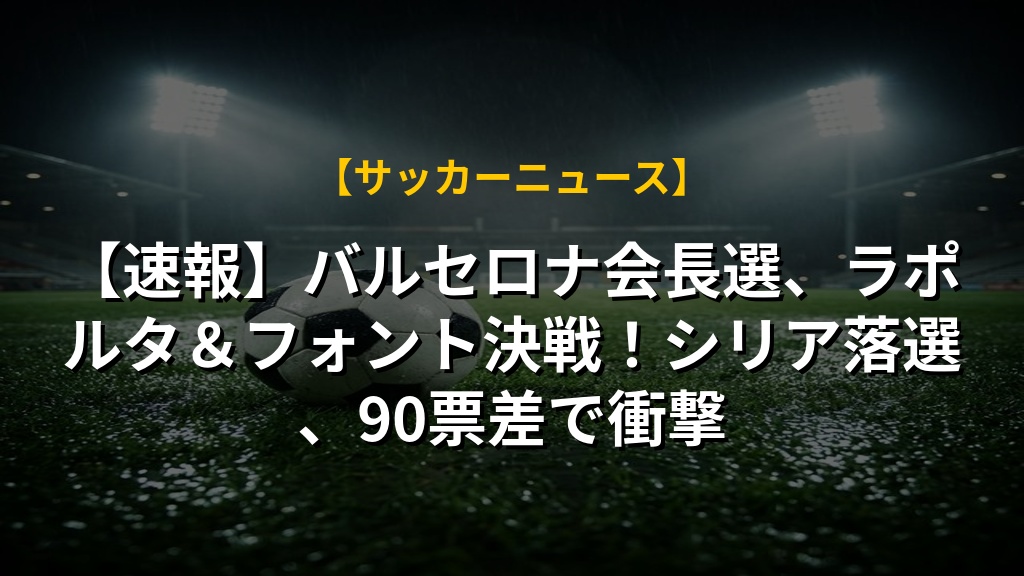 次期会長は、クラブの財政再建や強化策を担うことになるため、選挙結果はバルセロナの将来に大きな影響を与えるだろう。