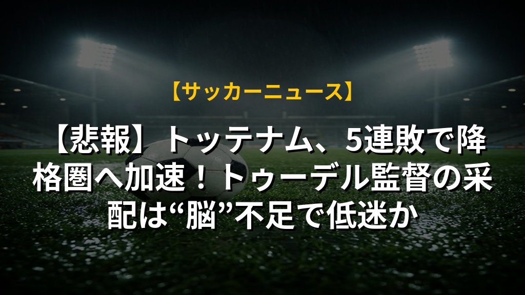 【悲報】トッテナム、5連敗で降格圏へ加速!トゥーデル監督の采配は“脳”不足で低迷か