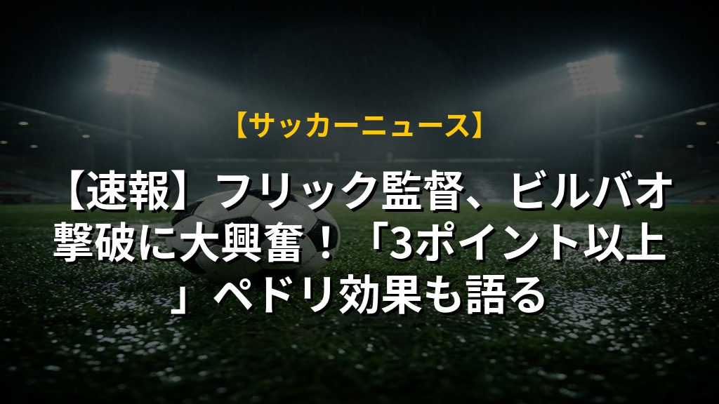 - ハンス・フリック監督は、アスレティック・ビルバオ戦の勝利が、3ポイント以上の価値を持つと強調。困難な状況下での勝利意義を語った。