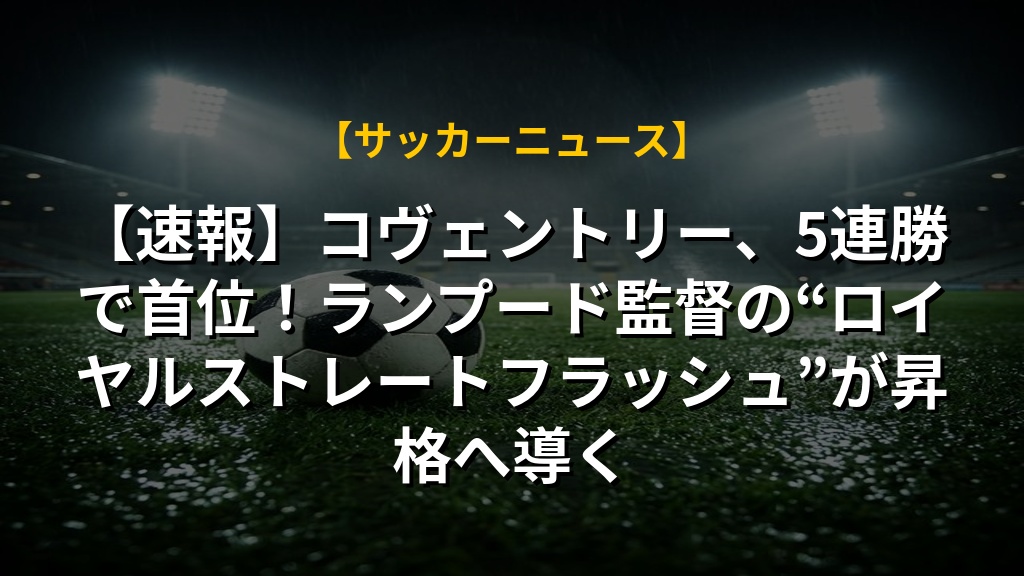 コヴェントリー・シティは、5連勝を飾り、リーグ首位に躍り出た。フランク・ランプード監督の戦術手腕は、オーナーのダグ・キングが「デッキ」と呼ぶチーム編成において、まさにロイヤルストレートフラッシュと評される。