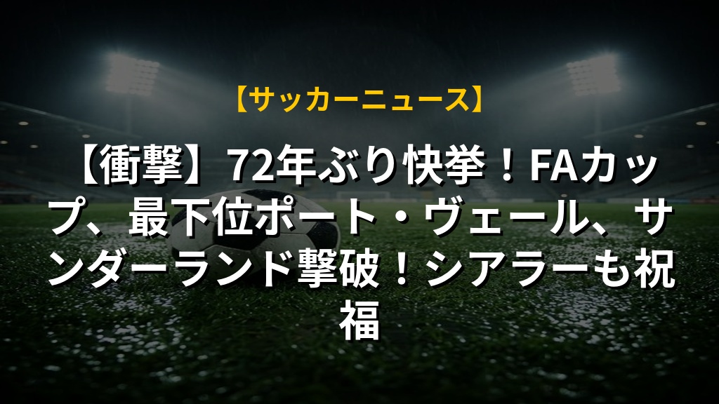 【衝撃】72年ぶり快挙!FAカップ、最下位ポート・ヴェール、サンダーランド撃破!シアラーも祝福
