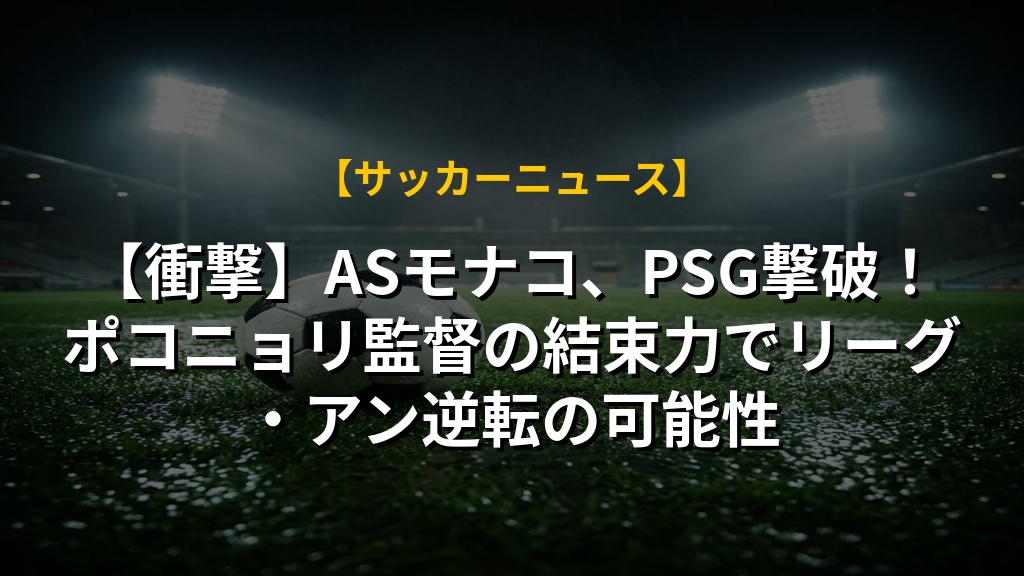 - PSGの低迷と対照的な状況:ASモナコが快進撃を見せる一方、パリ・サンジェルマンは自信を失い、リーグ首位を譲りつつある。