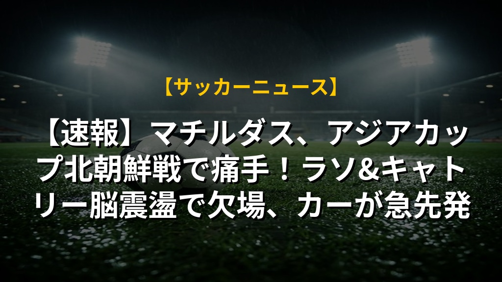 【速報】マチルダス、アジアカップ北朝鮮戦で痛手!ラソ&キャトリー脳震盪で欠場、カーが急先発