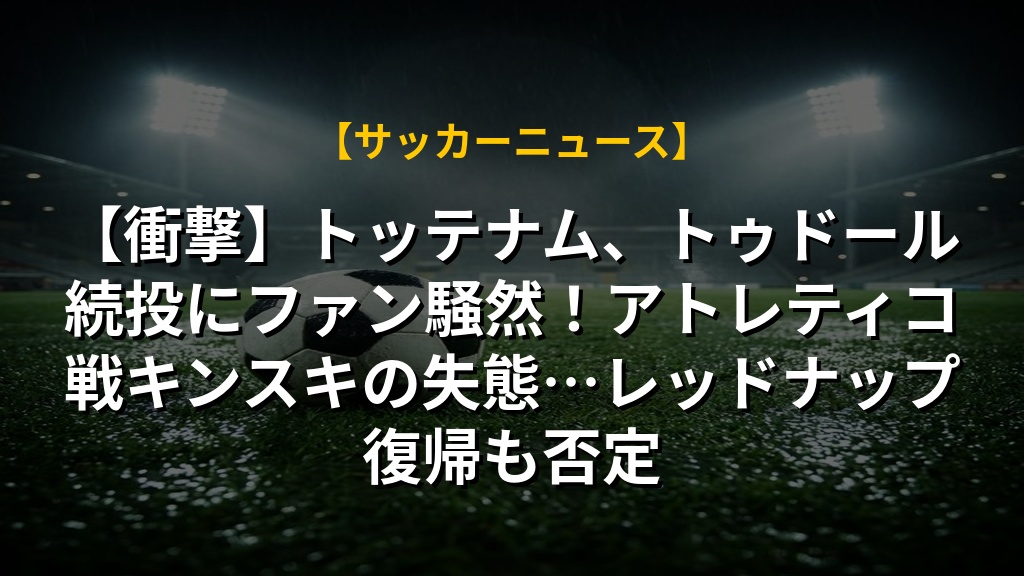 【衝撃】トッテナム、トゥドール続投にファン騒然!アトレティコ戦キンスキの失態…レッドナップ復帰も否定