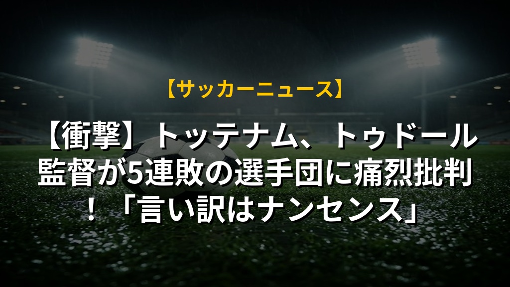 【衝撃】トッテナム、トゥドール監督が5連敗の選手団に痛烈批判!「言い訳はナンセンス」