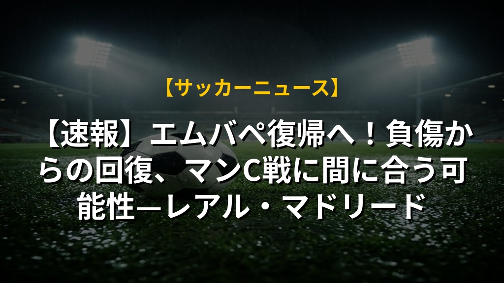 【速報】エムバペ復帰へ!負傷からの回復、マンC戦に間に合う可能性—レアル・マドリード