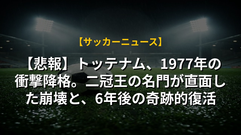 【悲報】トッテナム、1977年の衝撃降格。二冠王の名門が直面した崩壊と、6年後の奇跡的復活