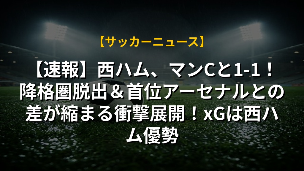 【速報】西ハム、マンCと1-1!降格圏脱出&首位アーセナルとの差が縮まる衝撃展開!xGは西ハム優勢
