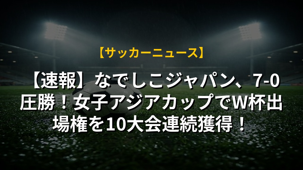 【速報】なでしこジャパン、7-0圧勝!女子アジアカップでW杯出場権を10大会連続獲得!