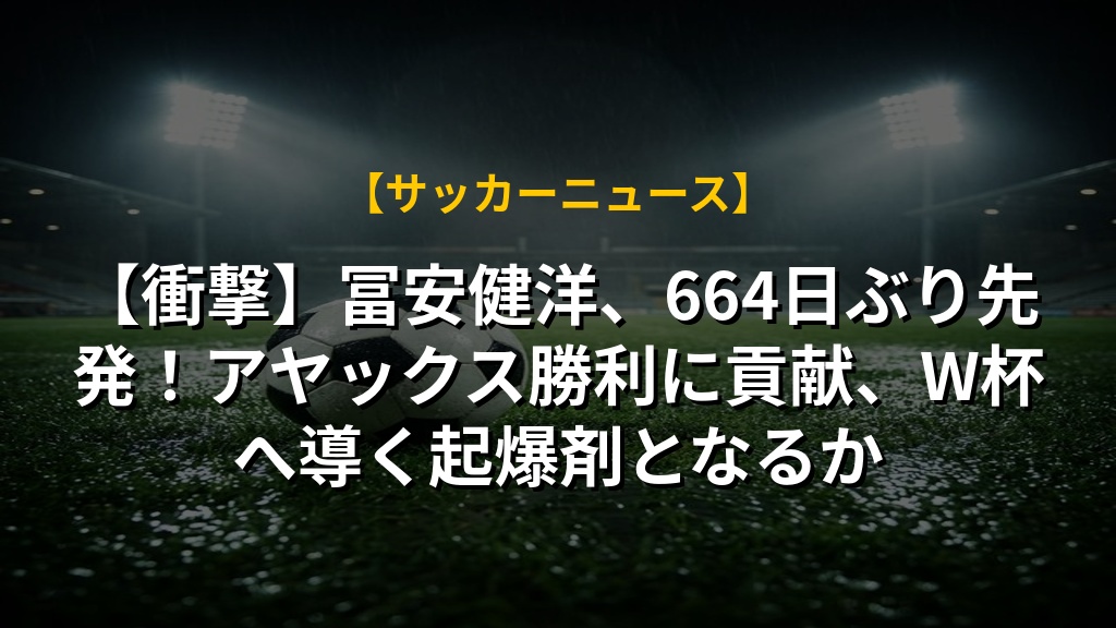 【衝撃】冨安健洋、664日ぶり先発!アヤックス勝利に貢献、W杯へ導く起爆剤となるか