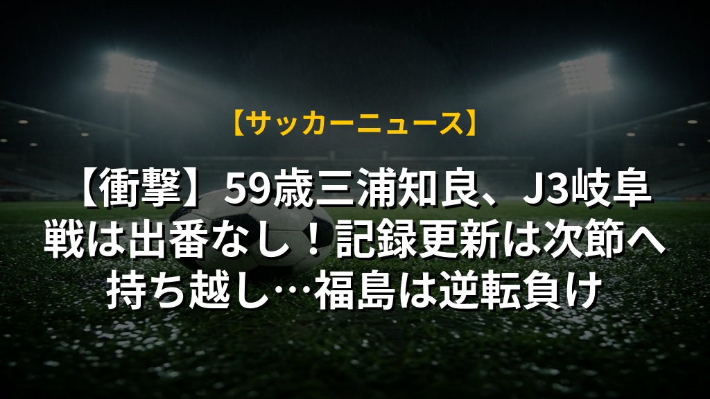 【衝撃】59歳三浦知良、J3岐阜戦は出番なし!記録更新は次節へ持ち越し…福島は逆転負け