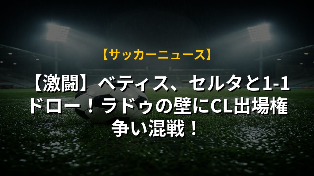 - 前半はセルタが圧倒的な試合運びを見せ、ベティスは苦戦。しかし後半はベティスが反撃し、同点に追いつくも勝利には至らず。
