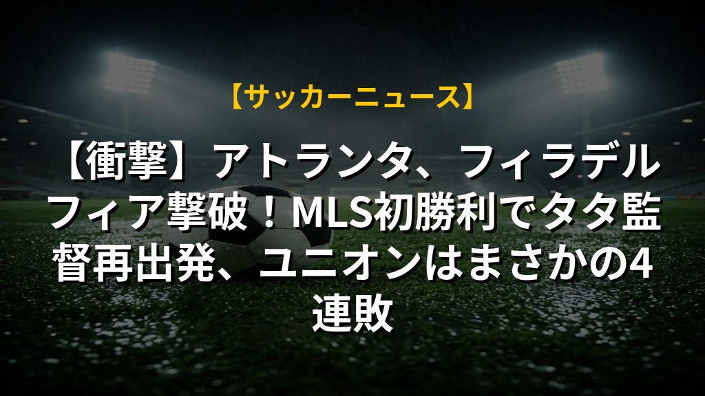 アトランタ・ユナイテッドがフィラデルフィア・ユニオンに勝利し、2026年シーズン初勝利を挙げた。この勝利は、昨シーズン後半の不調から脱却し、タタ・マルティーノ監督時代の新たなスタートを切るという意味合いを持つ。一方、フィラデルフィア・ユニオンは、昨シーズンのサポーターズ・シールド優勝チームでありながら、今シーズン開幕から4連敗という不名誉な記録を打ち立てた。