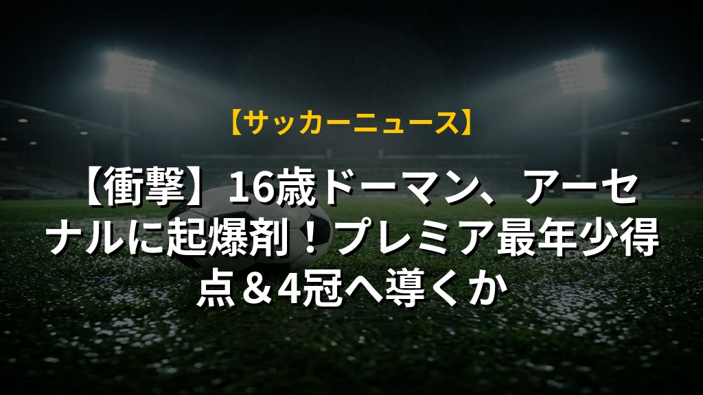 - 16歳のドーマン選手は、プレミアリーグ史上最年少得点記録を樹立し、チームのタイトル獲得に貢献する可能性を示唆。