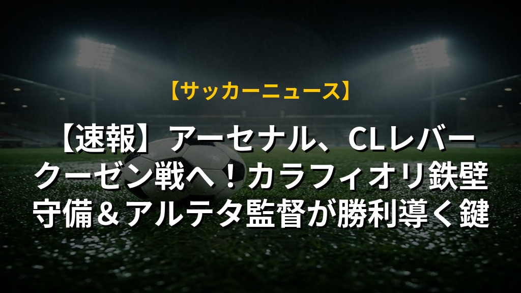 【速報】アーセナル、CLレバークーゼン戦へ!カラフィオリ鉄壁守備&アルテタ監督が勝利導く鍵