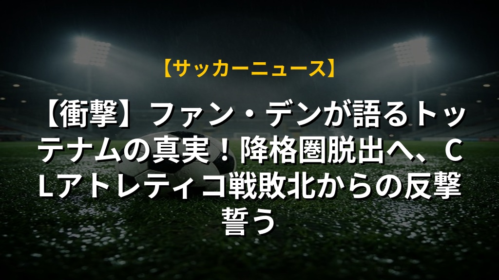 【衝撃】ファン・デンが語るトッテナムの真実!降格圏脱出へ、CLアトレティコ戦敗北からの反撃誓う