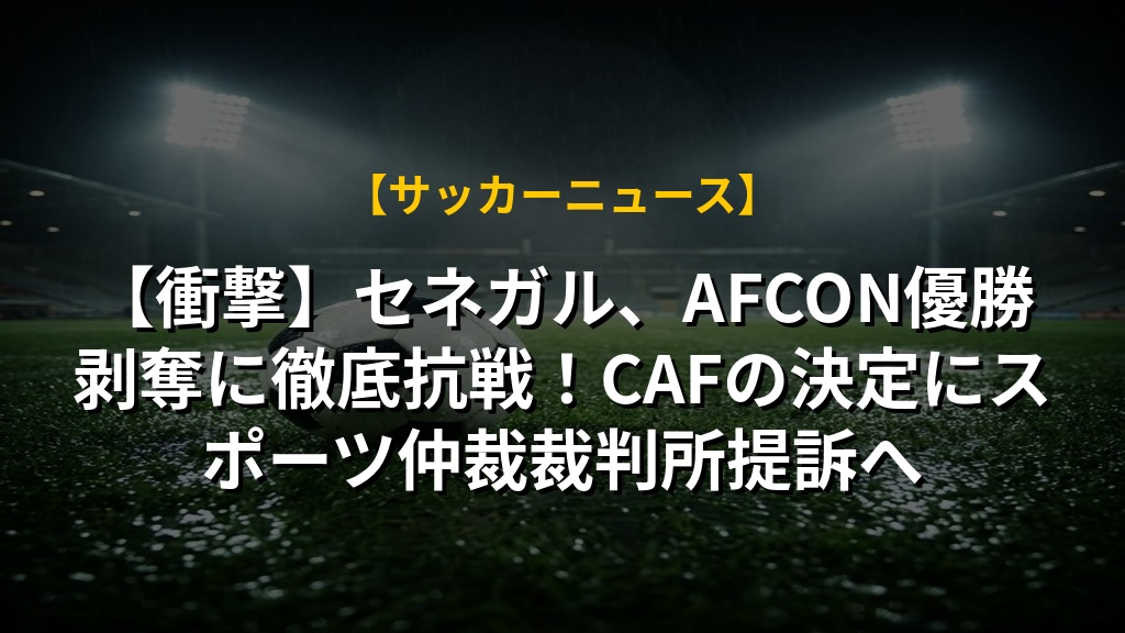 【衝撃】セネガル、AFCON優勝剥奪に徹底抗戦!CAFの決定にスポーツ仲裁裁判所提訴へ
