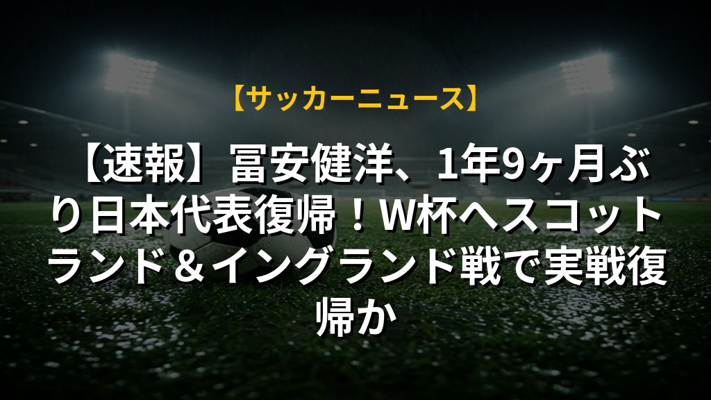 【速報】冨安健洋、1年9ヶ月ぶり日本代表復帰!W杯へスコットランド&イングランド戦で実戦復帰か