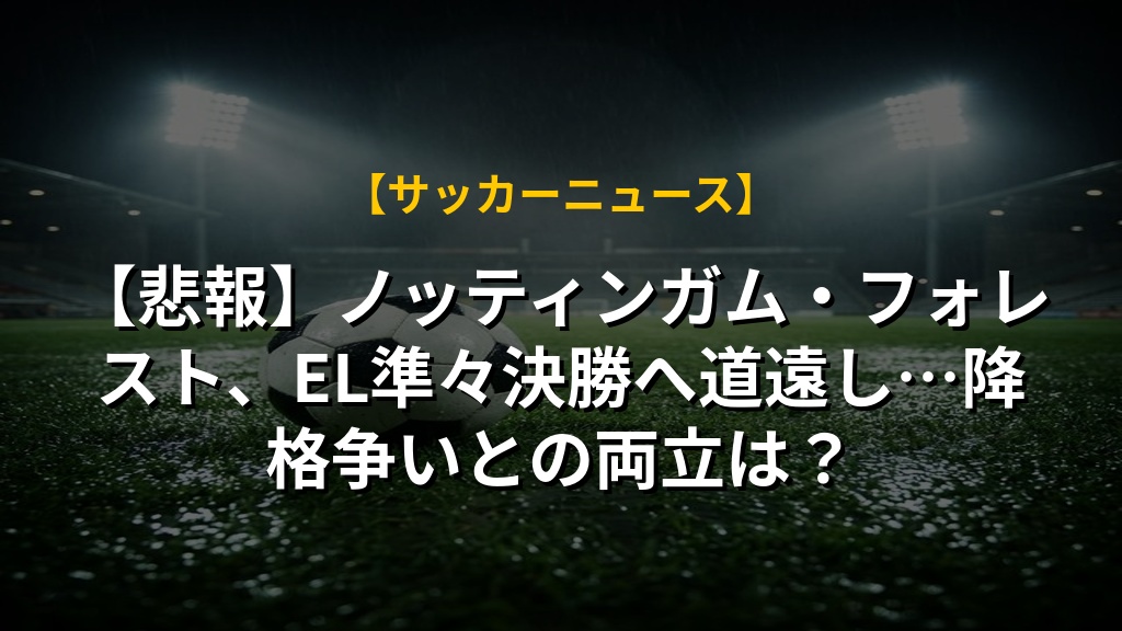 【悲報】ノッティンガム・フォレスト、EL準々決勝へ道遠し…降格争いとの両立は?