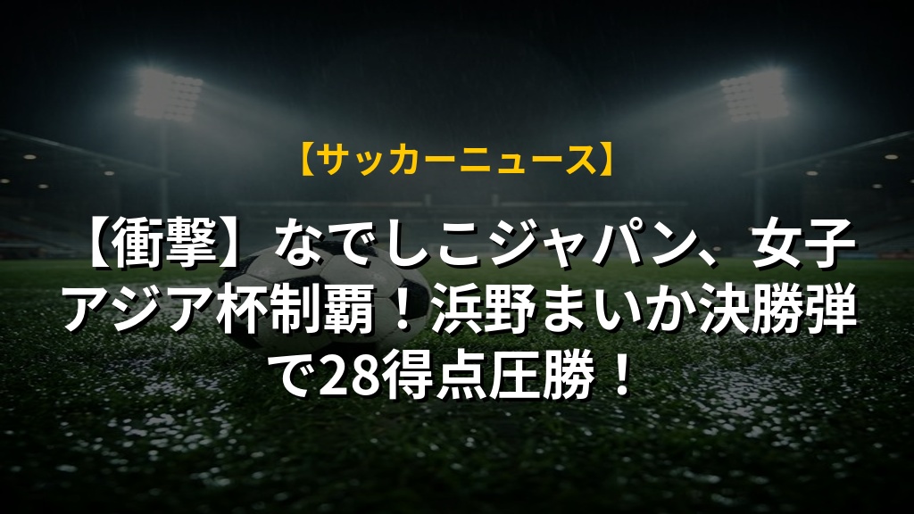 【衝撃】なでしこジャパン、女子アジア杯制覇!浜野まいか決勝弾で28得点圧勝!