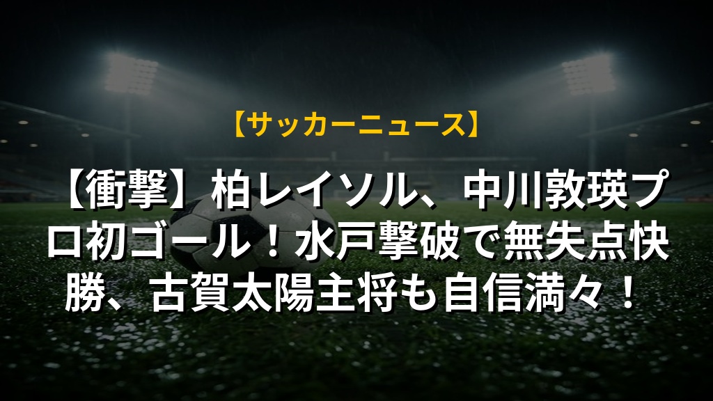 【衝撃】柏レイソル、中川敦瑛プロ初ゴール!水戸撃破で無失点快勝、古賀太陽主将も自信満々!