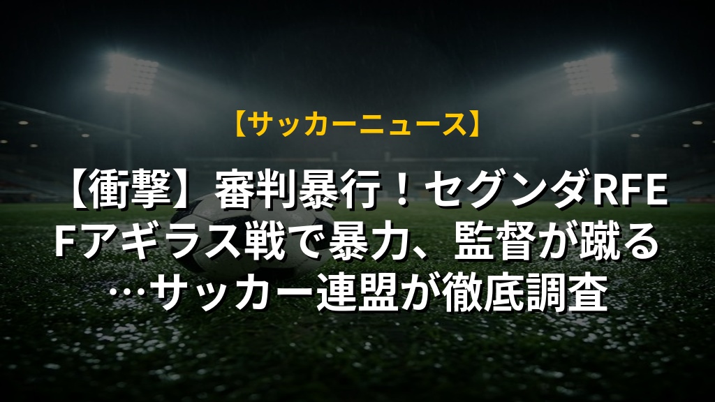 スペインのセグンダRFEFで起きたアギラス対UCAMムルシア戦での審判への暴力行為は、本当に衝撃的でした。ペットボトルや投石、監督の暴行疑惑、更衣室での脅迫…到底許される行為ではありません。クラブ側は否定していますが、連盟の調査結果が注目されます。
