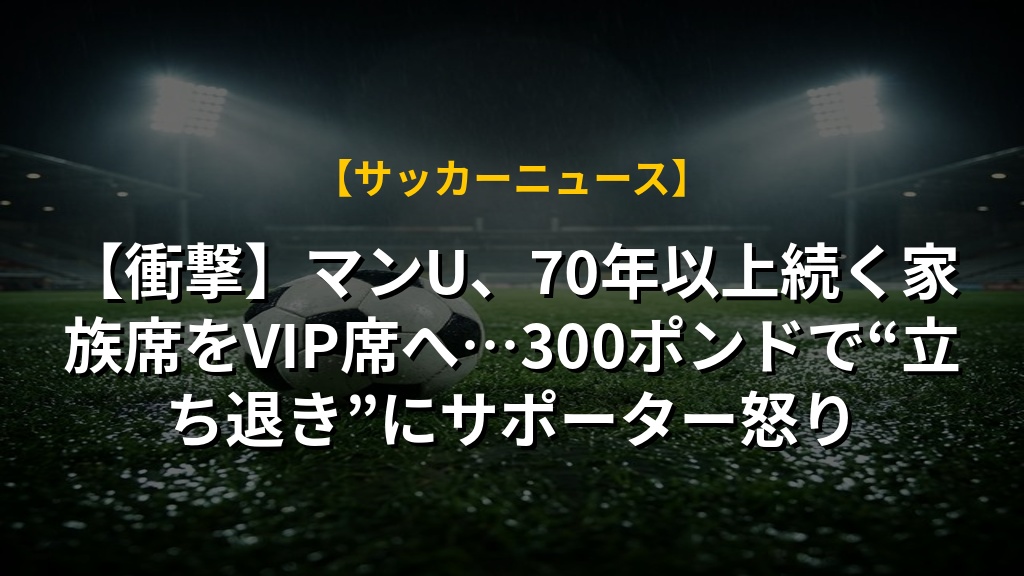 マンチェスター・ユナイテッドがVIP席を増やすため、長年同じ席を使っていた約1100人のファンをシーズン終了後に移動させる計画が明らかになりました。第二次世界大戦後から家族席を保持してきたファンも含まれており、高額なVIP席のために退去を余儀なくされる状況に、多くのサポーターから不満の声が上がっています。