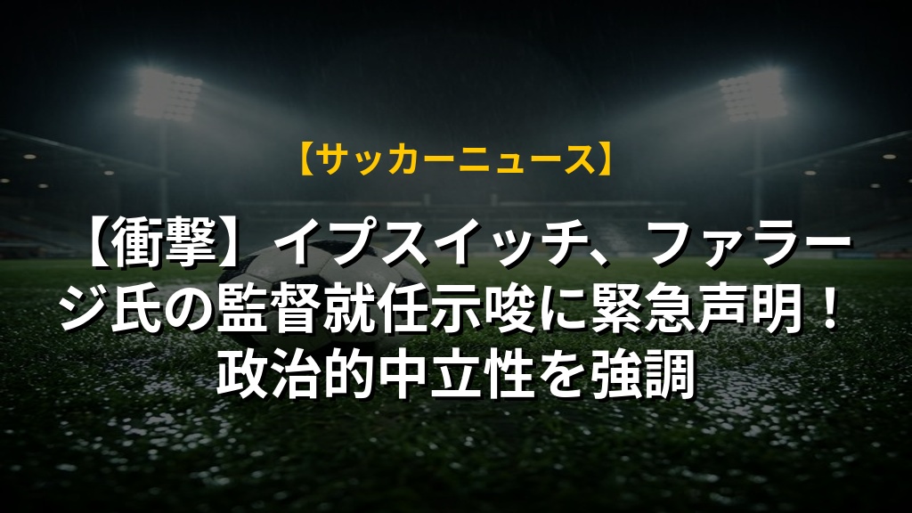 【衝撃】イプスイッチ、ファラージ氏の監督就任示唆に緊急声明!政治的中立性を強調